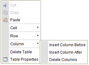 The table context menu lets you edit table columns. If you hover your mouse over the Column menu option, further options become available.