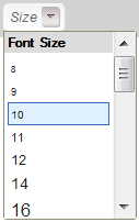 button on the toolbar. The font size drop-down list contains a number of sizes that you can use. To make the choice easier, the items of the list are displayed in a font size that they represent, giving you a preview of what the text will look like.