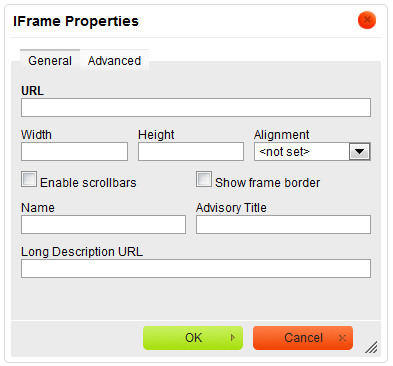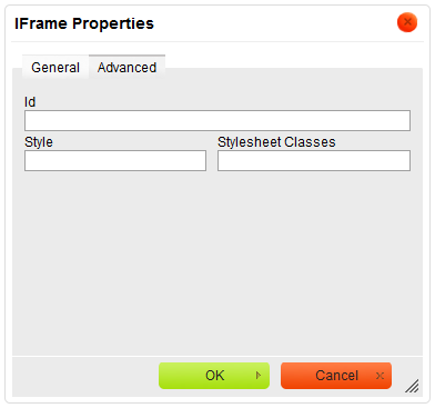 http://example.com/iframe.html/pages/iframe.htmliframe element, scrollbars will be displayed to enable the user to see the whole inline document.iframe element (name attribute).title attribute).longdesc attribute).The Advanced tab lets you configure additional inline frame options such as assign it an ID, a class, or CSS style properties. It is meant for advanced users with knowledge of HTML as well as CSS, and gives nearly endless possibilities as far as the presentation of the iframe is concerned.