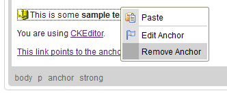 Removing an anchor is just as easy as adding it. When the cursor is placed in an anchor, the Remove Anchor context menu command becomes available. Open the element's context menu by pressing the right mouse button or using the Menu/Application key on your keyboard, and choose the Remove Anchor command. This option removes the anchor from the document and leaves plain text.