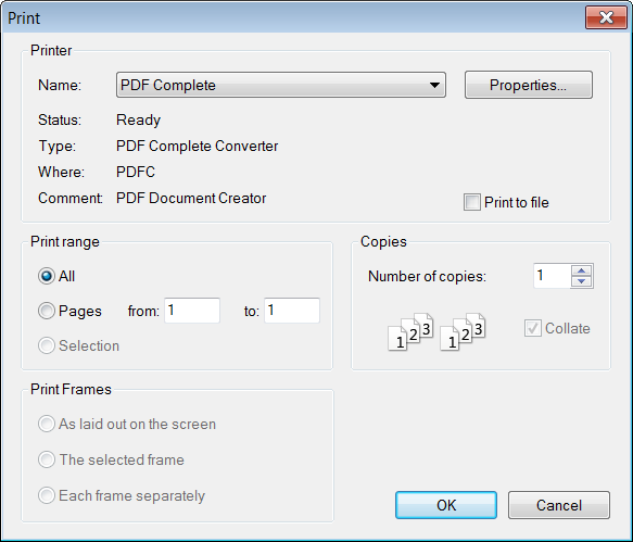 button on the toolbar. The standard printing pop-up window of your operating system will appear and you will be able to choose the printer as well as all relevant options.