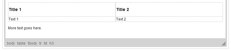 The figure below shows the editing area of Text Editor after inserting the template called "Strange Template" that defines a two-column-layout with headings and a text placeholder. Since the Replace actual contents option was selected, the template replaced the text that was previously entered into the editing area.